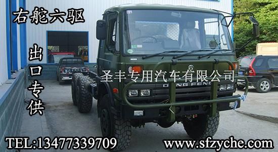 東風(fēng)右舵出口專供六驅(qū)越野卡車,可在此底盤基礎(chǔ)上改裝右舵越野油罐車,右舵越野灑水車,右舵越野廂式車,右舵越野冷藏車,右舵越野自卸車,右舵越野隨車吊等各種特種作業(yè)專用車型。