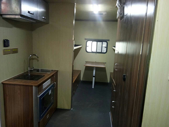 東風(fēng)大型四驅(qū)越野房車滿足更多路況復(fù)雜環(huán)境使用,廂體內(nèi)裝有豪華折疊床、液晶電視、儲(chǔ)物柜、應(yīng)急燈、頂燈、頂置空調(diào)、床墊、被褥、燃油加熱器、頂護(hù)欄、爬梯、隱藏抽拉梯、專用房車門、中空玻璃、戶外燈。由保溫廂體、空氣調(diào)節(jié)系統(tǒng)、宿營(yíng)設(shè)施、影音系統(tǒng)、電氣系統(tǒng)、通風(fēng)換氣系統(tǒng)、洗漱和衛(wèi)生設(shè)施。整個(gè)廂體分為三個(gè)部分,住宿區(qū)、洗漱區(qū)、餐飲區(qū)。住宿區(qū)包括四個(gè)上下鋪,床頭燈,液晶電視,空調(diào)等。洗浴區(qū)包括臉臺(tái),衛(wèi)生間,熱水器等。餐飲區(qū)包括無煙灶臺(tái),可活動(dòng)餐桌,洗菜盆等。也可以根據(jù)用戶的需要設(shè)計(jì),可增加會(huì)議室,辦公區(qū)等。東風(fēng)大型四驅(qū)越野房車內(nèi)飾圖片: