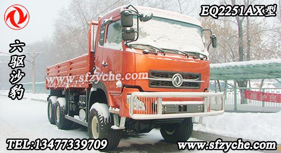 東風(fēng)牌EQ2251AX型沙漠越野車配置:采用東風(fēng)新款D310平頂單臥駕駛室,發(fā)動機:康明斯375馬力國四發(fā)動機 直列增壓中冷六缸水冷柴油機 ISLe375 40;北方奔馳同步器型9擋箱 9T-160 Φ430mm,膜片彈簧拉式離合器,7T前橋,10T 重慶大江雙級減速雙后橋 14.00-20輪胎 (選裝20-20 沙漠胎)軸距3800+1400 鋼板彈簧片數(shù)9/10,油箱350L,貨箱尺寸:5720×2294×800mm,整車外形尺寸:8470×2500,2700×3520,動力轉(zhuǎn)向。如需了解更多東風(fēng)六驅(qū)沙漠車圖片,東風(fēng)六驅(qū)沙漠車價格,東風(fēng)六驅(qū)沙漠車參數(shù),請立即撥打銷售熱線:13477339709 李經(jīng)理 0722-7053060 業(yè)務(wù)QQ:530233927,東風(fēng)越野卡車網(wǎng)址:m.117685.com