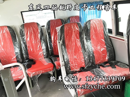 6.鋁花紋地板,中檔皮革座椅5-9個(gè),整車座椅3點(diǎn)式安全帶,手動(dòng)式外擺門,正副司機(jī)門,選裝東風(fēng)原廠派恩頂置空調(diào)