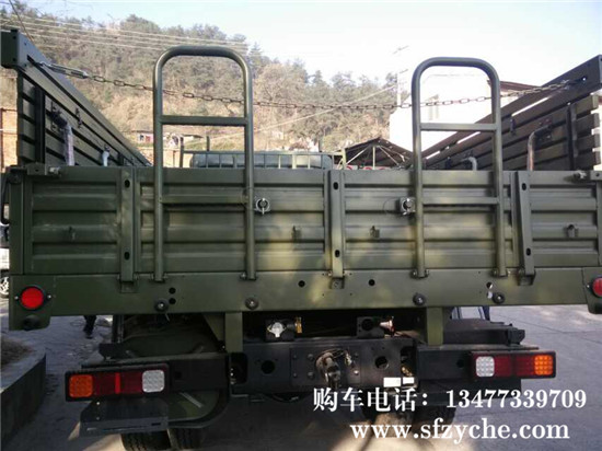 東風國五天錦EQ1120GA2型運兵車,4×2驅(qū)動,D530平頭一排半平頂駕駛室,,軸距3800mm,康明斯ISD245 50國五排放245馬力,6.7升發(fā)動機,八擋變速箱,帶電加熱(預(yù)熱塞)冷起動裝置,全鋼全鋼 主油箱160L,80L副油箱,Φ395mm推式膜片彈簧離合器,東風 4.5噸前橋,9噸后橋,主減速比5.286,車架斷面250×80×(7+4)mm,鋼板彈簧片數(shù)7/9+6,9.00R20鋼絲胎,電動玻璃升降器,中控門鎖,通道式儀表板,帶空調(diào),車廂內(nèi)部尺寸為4950x22325x600mm鐵木混合結(jié)構(gòu),邊板帶坐凳,板材采用國標鋼材,邊板1.2mm,底板為3mm的花紋鋼板,車廂底橫梁用槽鋼加固,車廂縱副梁全槽鋼結(jié)構(gòu),能滿足客戶運輸重型貨物,適應(yīng)部隊野外使用及冰雪路面行駛要求。全面繼承東風40多年軍車越野車制造經(jīng)驗,動力總成匹配合理,生產(chǎn)技術(shù)成熟穩(wěn)定,整車車輛全面通過軍檢。