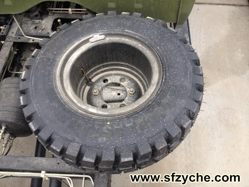 11R18型越野胎主要適用于軍用車輛行駛,可同時滿足軍用車輛在好路面上的高速行駛及在路況較差或無路情況下的越野行駛。該胎花紋采用無向塊狀設(shè)計,主行駛面花紋溝深度較淺且以縱向花紋溝為主,橫向花紋溝寬度較小,可提高輪胎的高速行駛性能、乘坐舒適性和操作穩(wěn)定性;胎肩部位的花紋以橫向花紋溝為主,花紋溝較寬較深,在越野時,對路面的抓著力強大,牽引力優(yōu)越、通過性能好,同時有利于花紋的散熱、排水和自潔性能。東風(fēng)越野胎:m.117685.com
