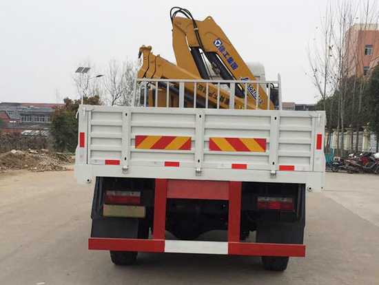 2. 采用徐工5噸折臂式隨車(chē)吊,SQZ105型徐工原廠吊機(jī),最大起重質(zhì)量5噸,三節(jié)臂,舉升高度11米,工作半徑8米,全液壓,全回轉(zhuǎn),車(chē)廂尺寸4.25米,遠(yuǎn)程油門(mén)控制,下操作。