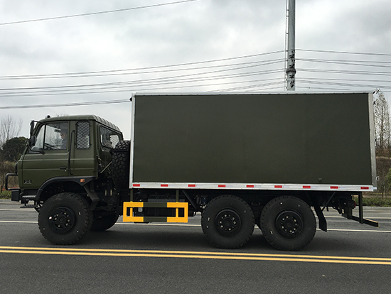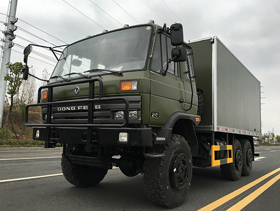 東風(fēng)六驅(qū)越野廂式車采用東風(fēng)越野卡車底盤DFS5160GLJ2 ,東風(fēng)153平頭一排半駕駛室,6*6驅(qū)動,康明斯210馬力,韶齒6檔變速箱,斷氣彈簧制動,貫通式中后驅(qū)動橋,12.5R20越野胎,軸距 3500+1250mm,加厚雙層大梁,帶軍用保險(xiǎn)杠。六驅(qū)越野廂式車,廂體根據(jù)用戶需要形式多樣,選裝多樣,可以選裝空調(diào)、側(cè)門、側(cè)窗、發(fā)電機(jī)、裙邊結(jié)構(gòu)等.