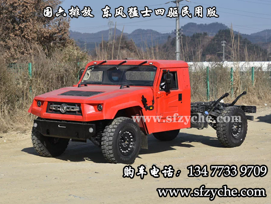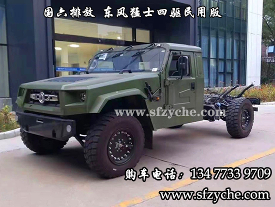 東風(fēng)猛士民用版EQ2063EYY6J型長頭單排四驅(qū)越野底盤是東風(fēng)越野車公司針對(duì)民用方面的首款軍轉(zhuǎn)民產(chǎn)品代表,其繼承東風(fēng)軍用猛士的正規(guī)血統(tǒng),品質(zhì)優(yōu)異,技術(shù)過硬。東風(fēng)猛士民用版EQ2063EYY6J采用東風(fēng)猛士M50型四驅(qū)底盤改造而成,采用東風(fēng)康明斯D4.0NS6B195型國六柴油發(fā)動(dòng)機(jī),195馬力 ,排量4L帶增壓,最大扭矩600/1100-2200(N.m/r/min);猛士5擋軍用手動(dòng)變速箱;分動(dòng)箱為四輪全時(shí)驅(qū)動(dòng)帶高低擋;軸距3800mm;整備質(zhì)量3540kg;核定載質(zhì)量2460kg;輪胎采用305/80R18MPT全鋼子午線輪胎,帶自動(dòng)中央充放氣系統(tǒng);整車總質(zhì)量6000kg,國六B排放全國可上黃牌,整車尺寸:5320*2310*1950mm;最小離地間隙388mm,最大垂直越障400mm,通過性強(qiáng),適應(yīng)高海拔極寒極熱地區(qū),全國暢行無阻,最高車速可達(dá)120km/h。