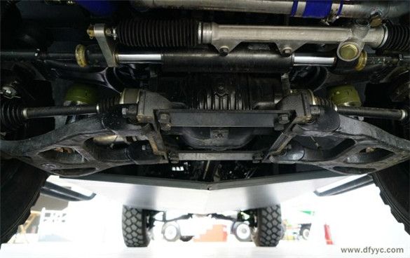 東風(fēng)四驅(qū)裝甲防雷反恐戰(zhàn)車的四驅(qū)系統(tǒng)全部國產(chǎn)化并非一步到位,經(jīng)過1代猛士基型車、標(biāo)準(zhǔn)2代猛士裝甲車、長軸距2代猛士裝甲車近10年的發(fā)展積累而來。而這種通過引進(jìn)技術(shù)、分布國產(chǎn)、吸收改進(jìn),到全部國產(chǎn)化并掌握知識產(chǎn)權(quán)的發(fā)展模式,已經(jīng)成為包括東風(fēng)特種汽車在內(nèi)多家軍裝企業(yè)的生產(chǎn)模式。在一個較高的起點(diǎn)上,用更短時間研發(fā)全新裝備,已經(jīng)脫離單純的購買、組裝的非可持續(xù)發(fā)展模式。 上圖是東風(fēng)四驅(qū)裝甲防雷反恐戰(zhàn)車底盤特寫。 東風(fēng)四驅(qū)裝甲防雷反恐戰(zhàn)車采用實(shí)時四驅(qū)系統(tǒng),包括前后差速器以及分動器和控制系統(tǒng)全部國產(chǎn)化。帶有自動調(diào)節(jié)輪胎壓力的系統(tǒng),具備5萬公里行駛無故障能力。為了提升東風(fēng)四驅(qū)裝甲防雷反恐戰(zhàn)車通過性,加裝了中央差速鎖。